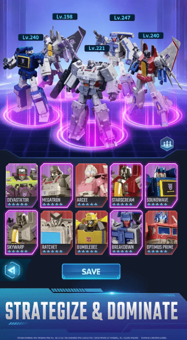 许多您熟悉和喜爱的变形金刚机器人将出现,每个变形金刚机器人都可以被招募作为强大的盟友与您并肩作战!