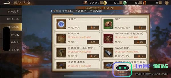 ◦ 武将&神兽&星蕴石自选(200烟花=1个):限购4个,优先换版本强势武将。